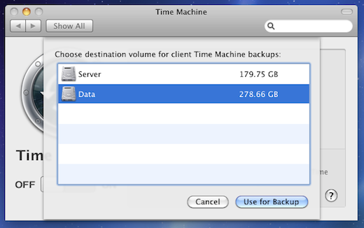 If you decide to use to use Time Machine Server you should always make sure that the disk you use has sufficient space to handle the backups from the various clients that you will be backing up. Backups for the client machines are save to a share at /Shared Items/Backups/ on whatever disk drive you configured.